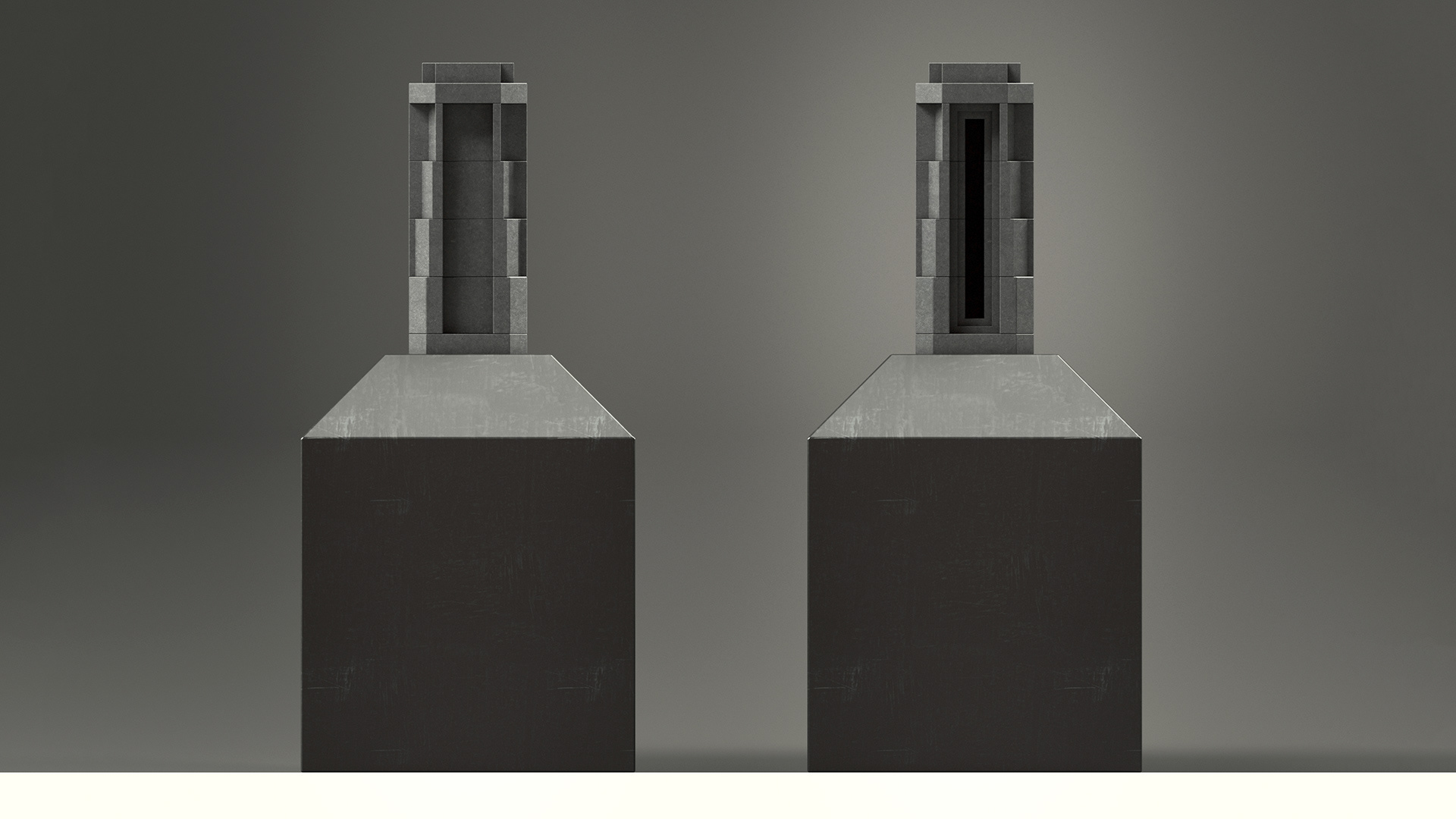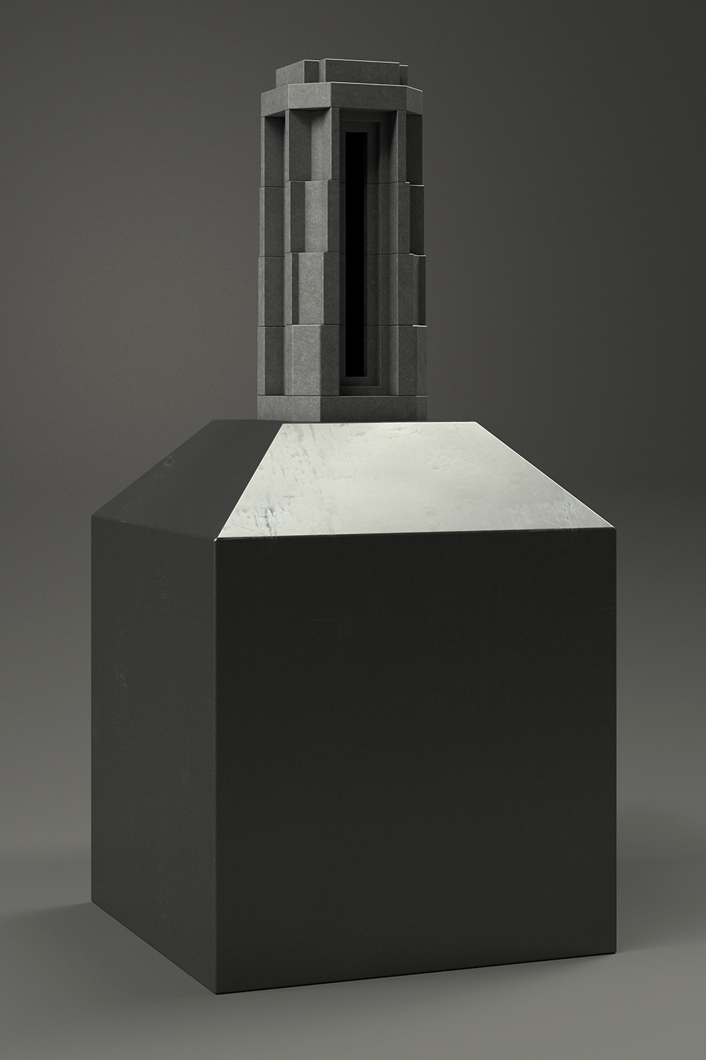 Visualisatie van een studie voor sculptuur "Babel III" van Renato Nicolodi