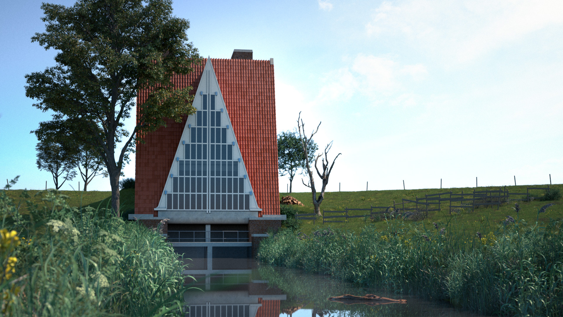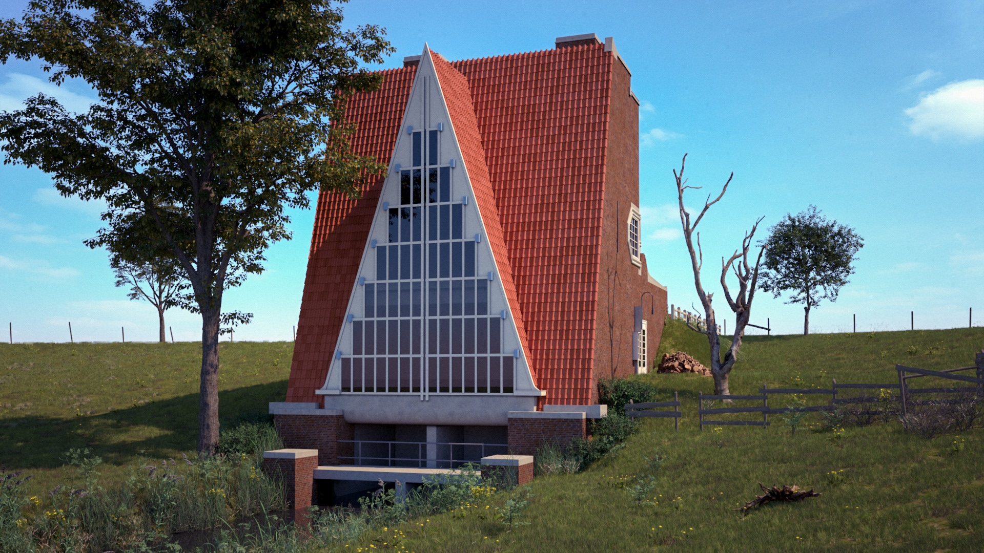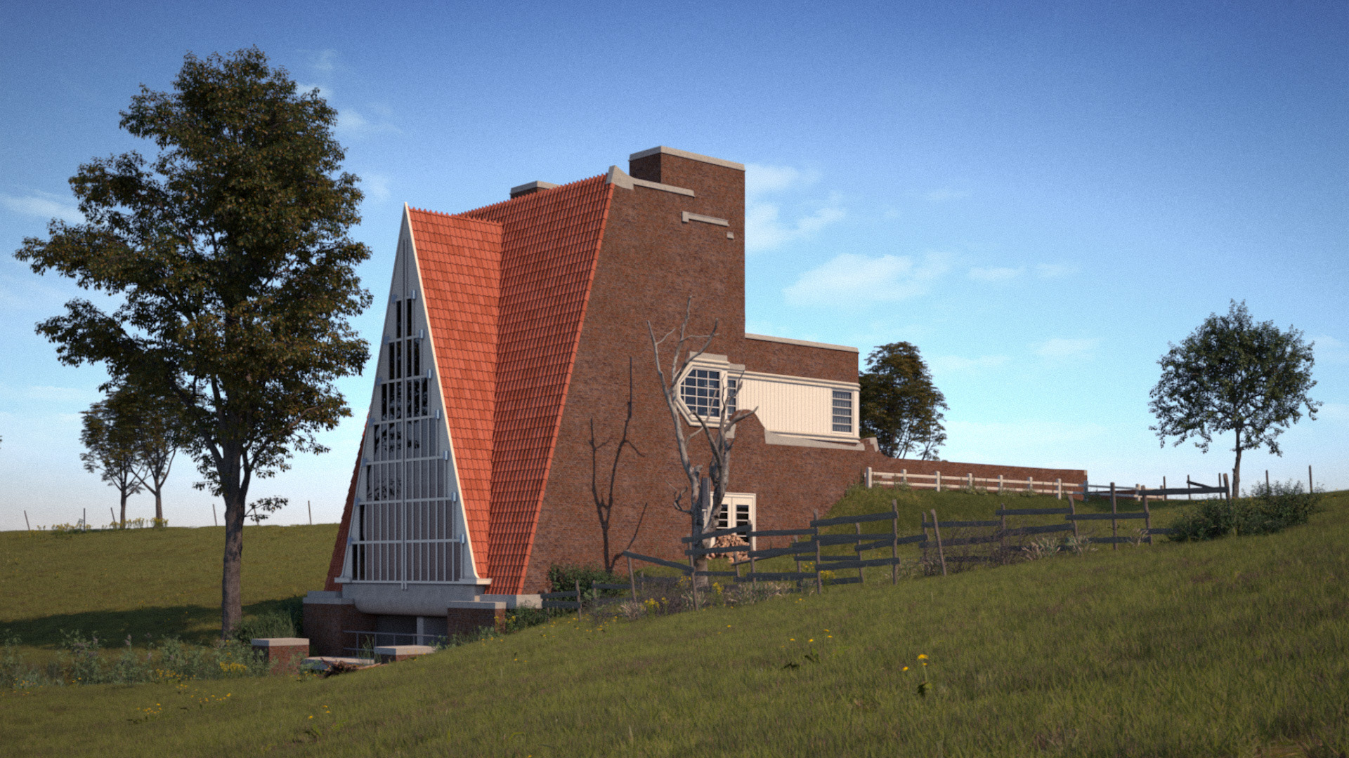 Digitale reconstructie van gesloopt motorgemaal, toegeschreven aan Pieter Marnette. Het werd in 1925 gebouwd in de stijl van de Amsterdamse School aan de Oosterringdijk in Watergraafsmeer bij Amsterdam.